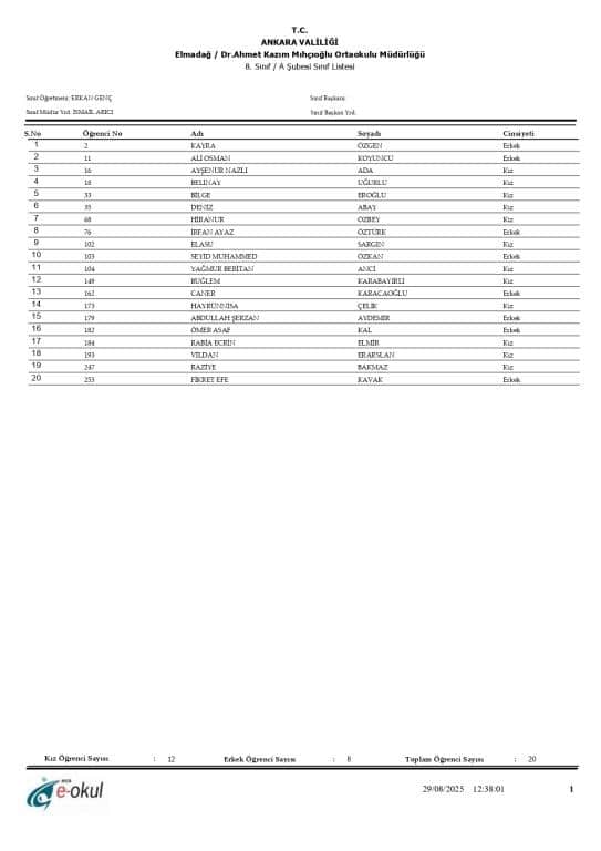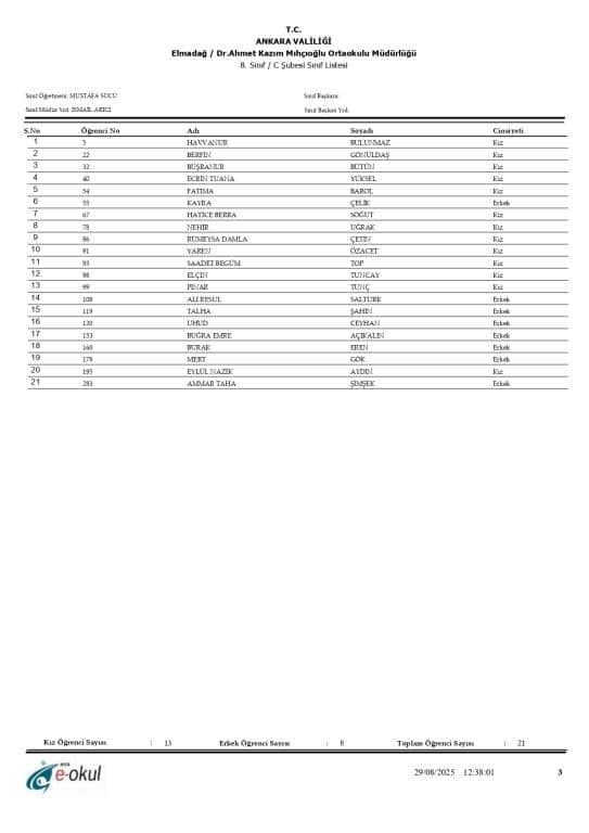 1. DÖNEM 1. YAZILILAR ORTAK SINAV TAKVİMİ